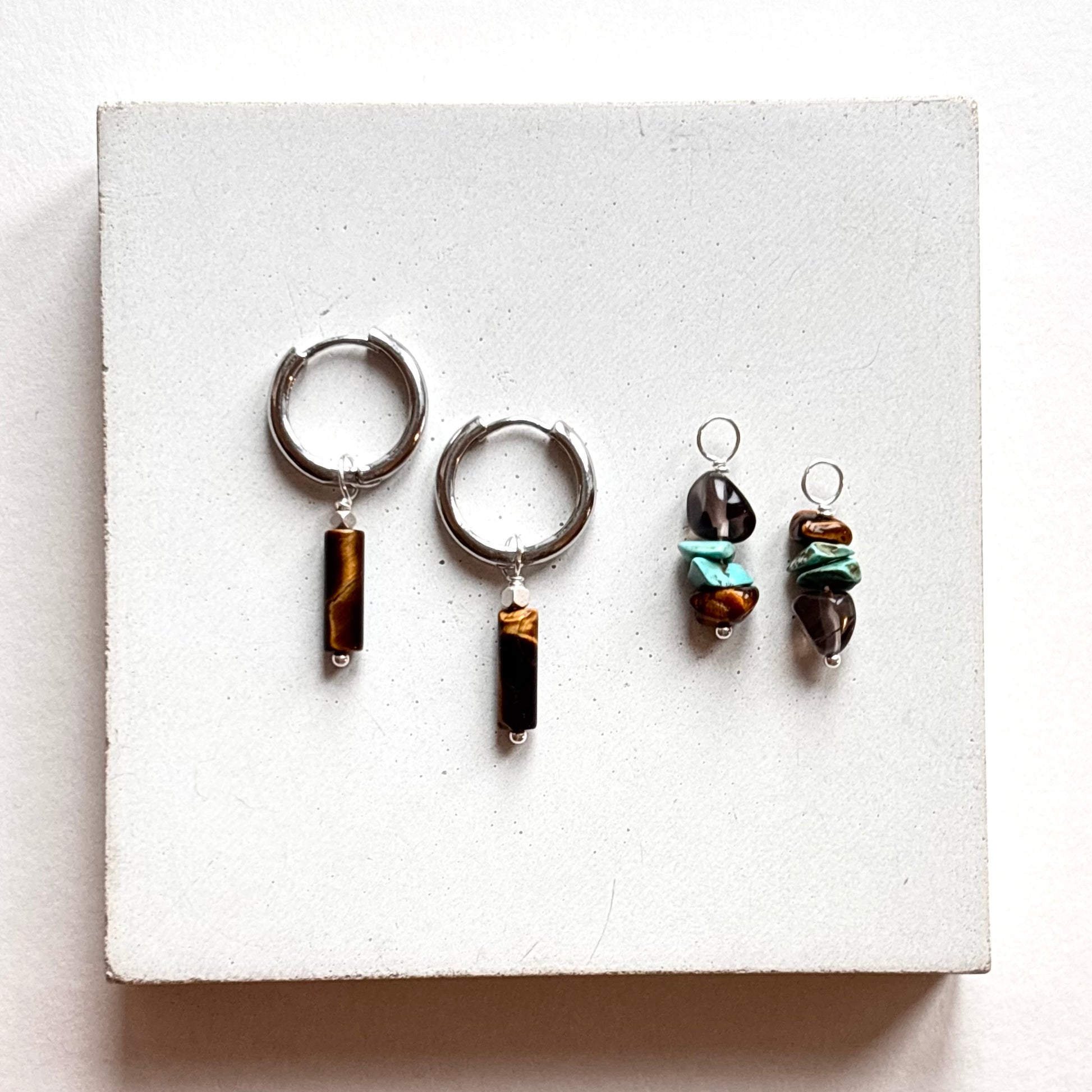 This set is made with Tigers Eye, Turquoise and Smokey Quartz for happy vibes!