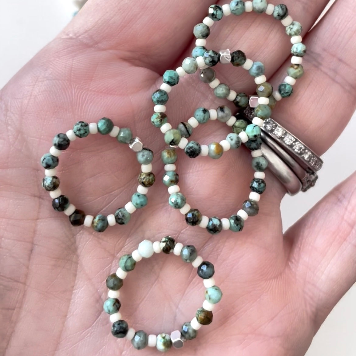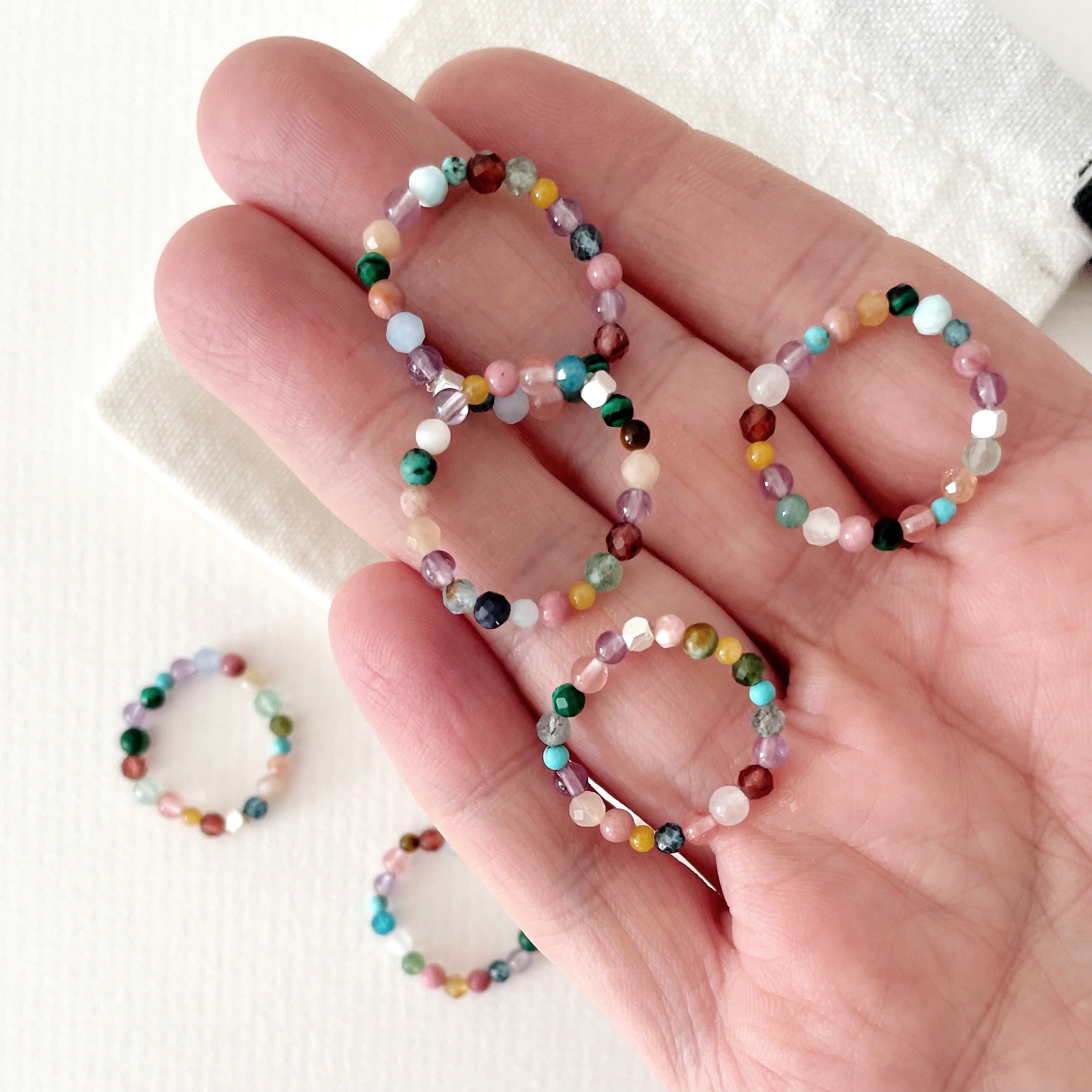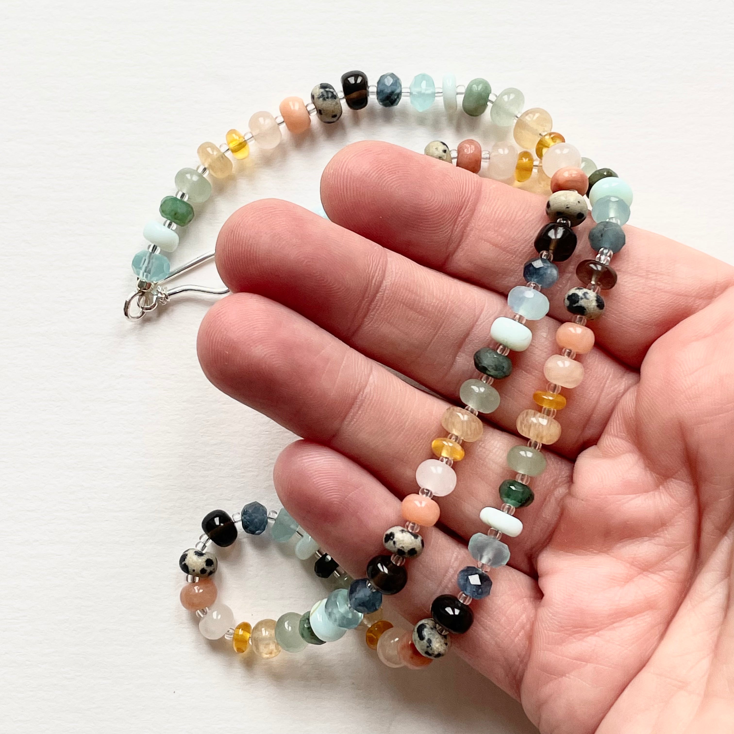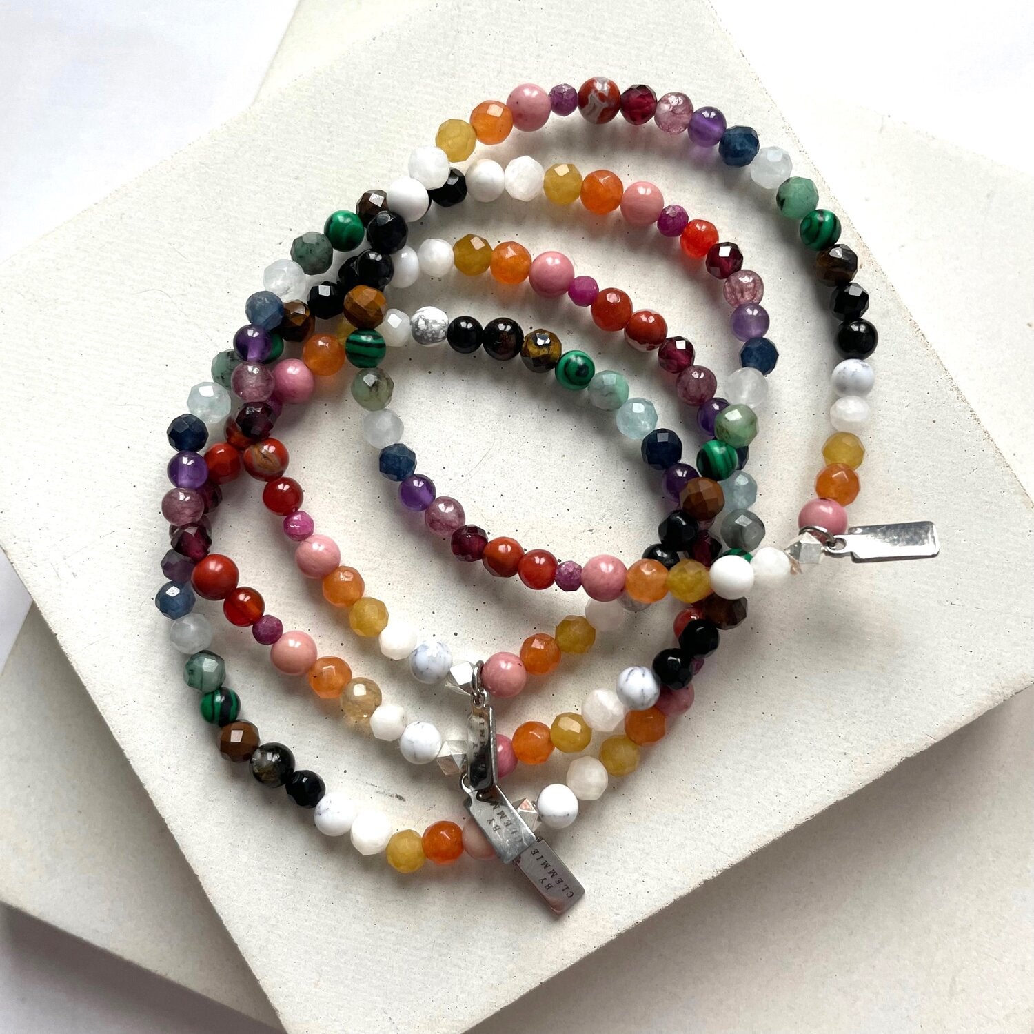I recommend treating your jewellery with care and avoid getting it wet. Keep pieces hung when not wearing them to avoid them getting tangled. If over time they need a little refresh you can send them to me for restringing here