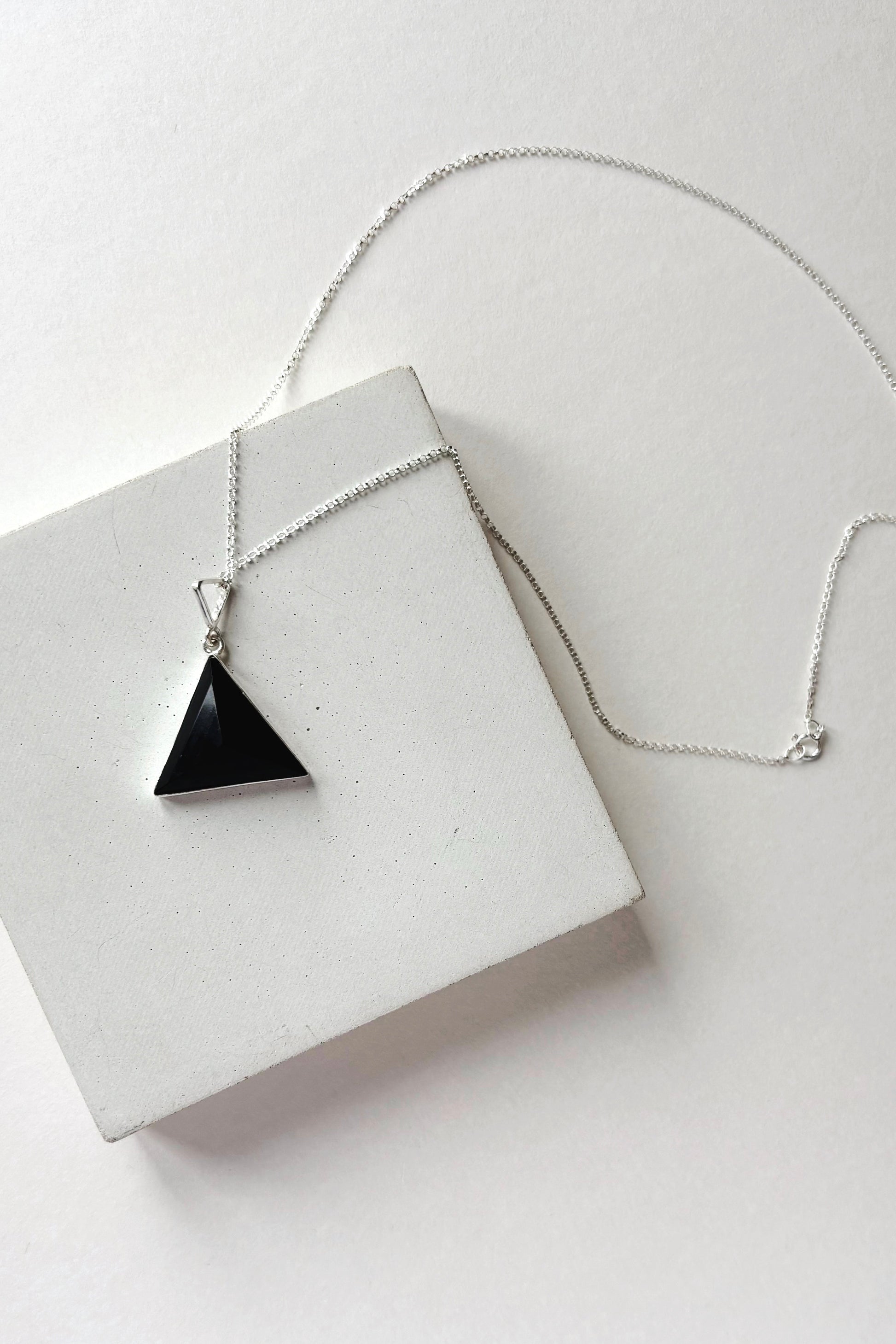 - The necklace measures 18 inches and the stones are 20mm pyramids.